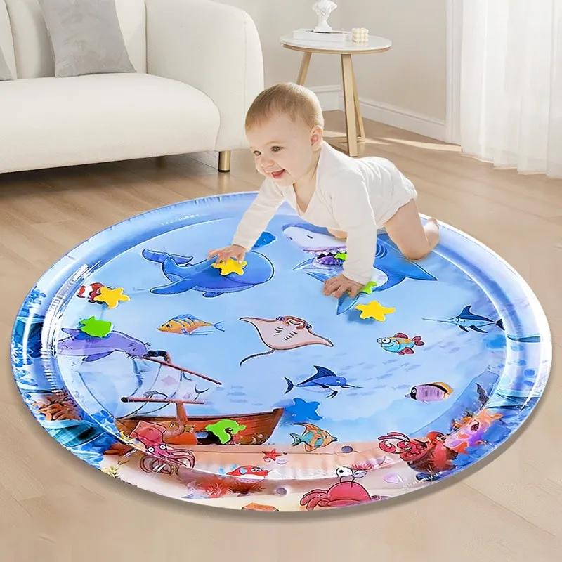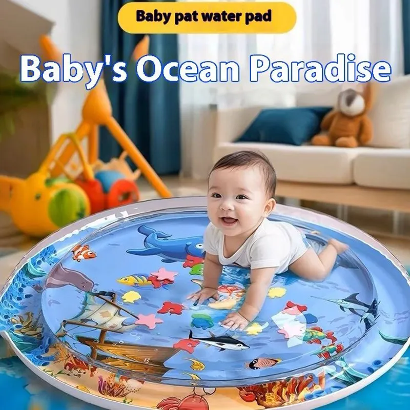 Answer:  A water play mat is an inflatable, soft mat filled with water that allows babies to enjoy tummy time while playing with floating toys. It helps with sensory development, hand-eye coordination, and muscle strength.